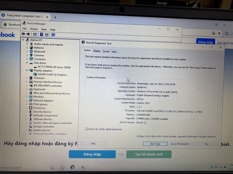 Laptop Dell Inspiron 3501/i5 1135G7/12GB/256GB/Win10 Mới